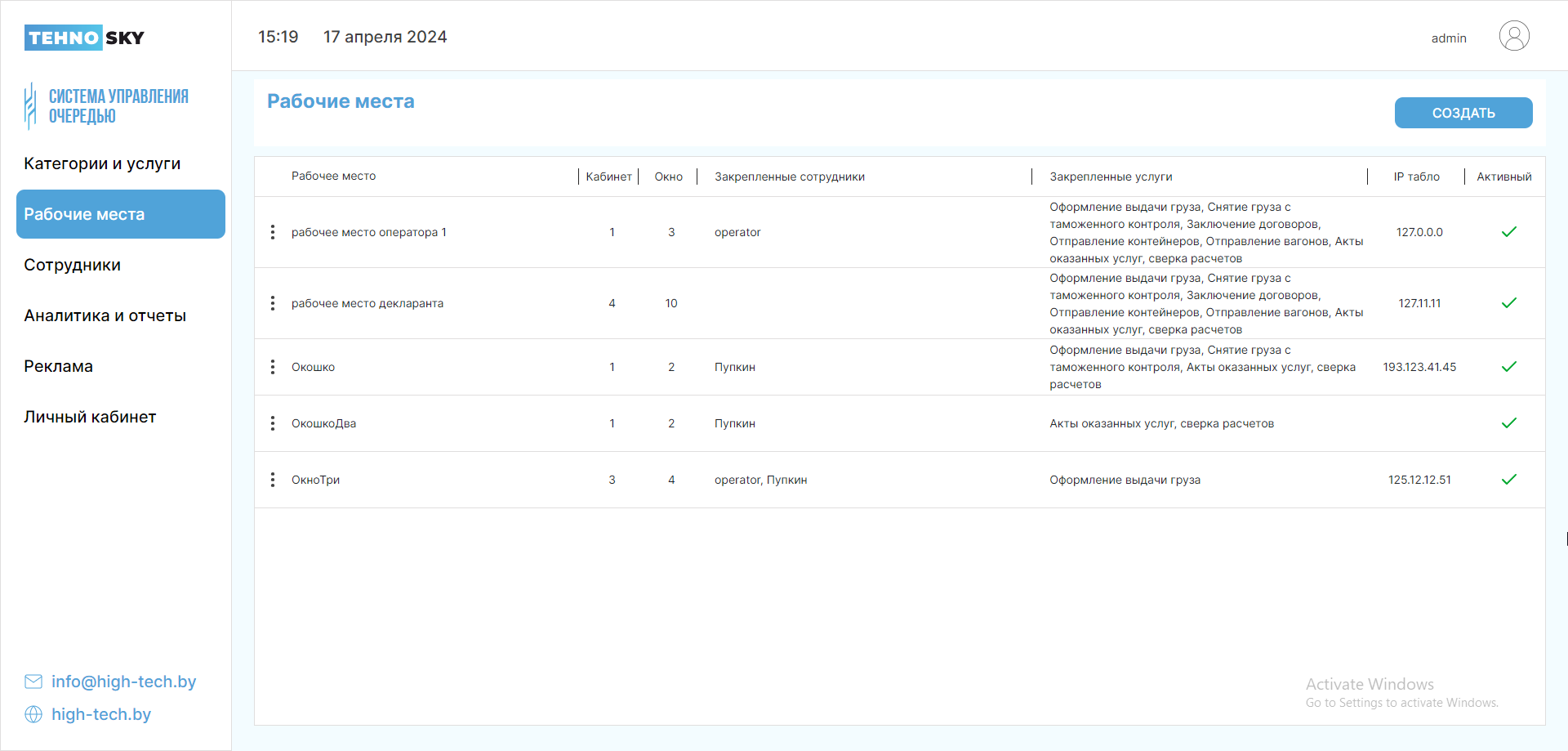 Для создания услуги: