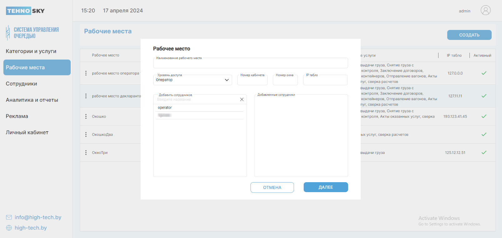Выберите время начала и конца работы.