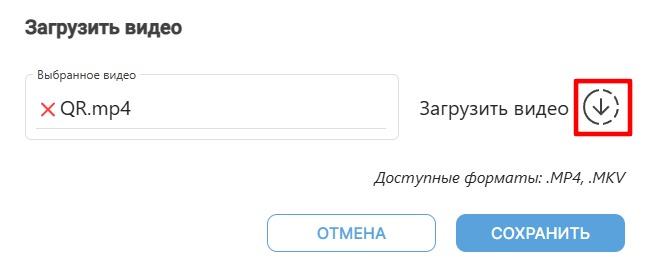 В открывшемся модальном окне нажмите пиктограмму Загрузить видео, выберите нужный файл, а затем нажмите кнопку Сохранить. Внимание! Формат видео – MP4, MKV, а размер до 150 МБ. Вы можете загрузить не более 20 видеофайлов.